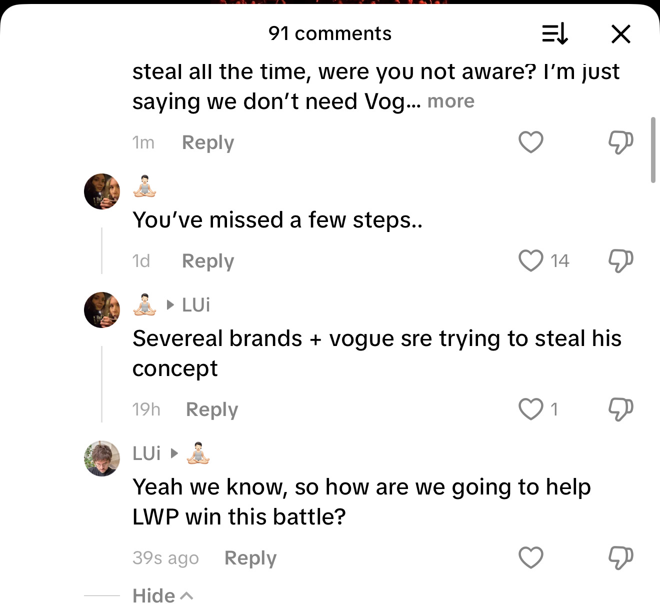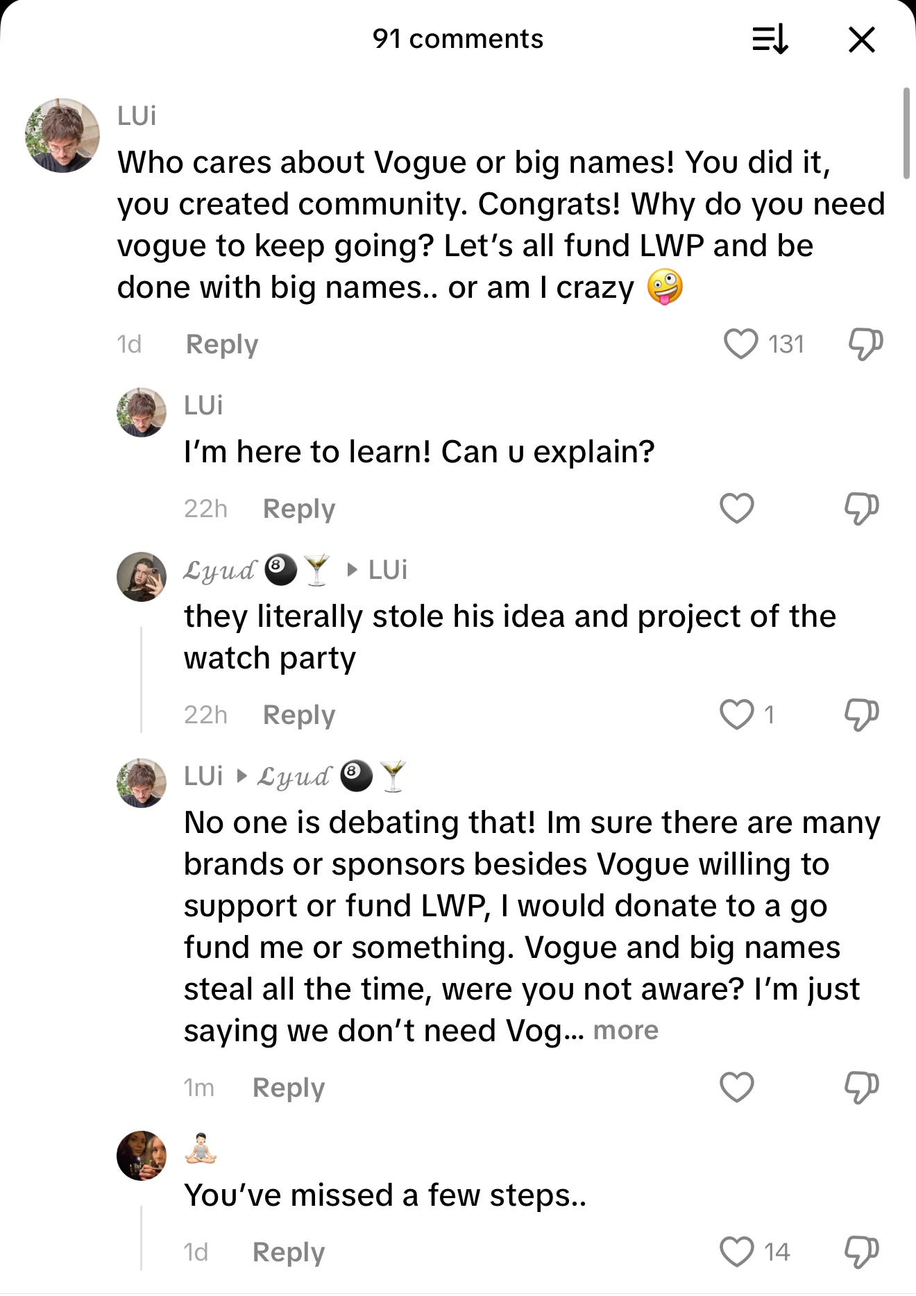 I love all the free press Le Watch Party is getting from the recent happenings. He knows what he is doing. He never needed Vogue, or anyone. It would have been nice, why not. Big names are always so tempting and full of vanity. But now with them stealing the concept, or whatever they are trying to copy, they just validated LWP. I really hope they don’t stay on that wagon for long, and I do feel that. A lot of FOMO after watching the latest posts. LWP doesn’t need Vogue, but they needed a push. Any upcoming project does. Classic dinosaur move by Vogue. I went to TikTok to see what people were commenting from the latest LWP posts, and it was just filled with people repeating the stealing situation and praising. So I went in to stir the pot.