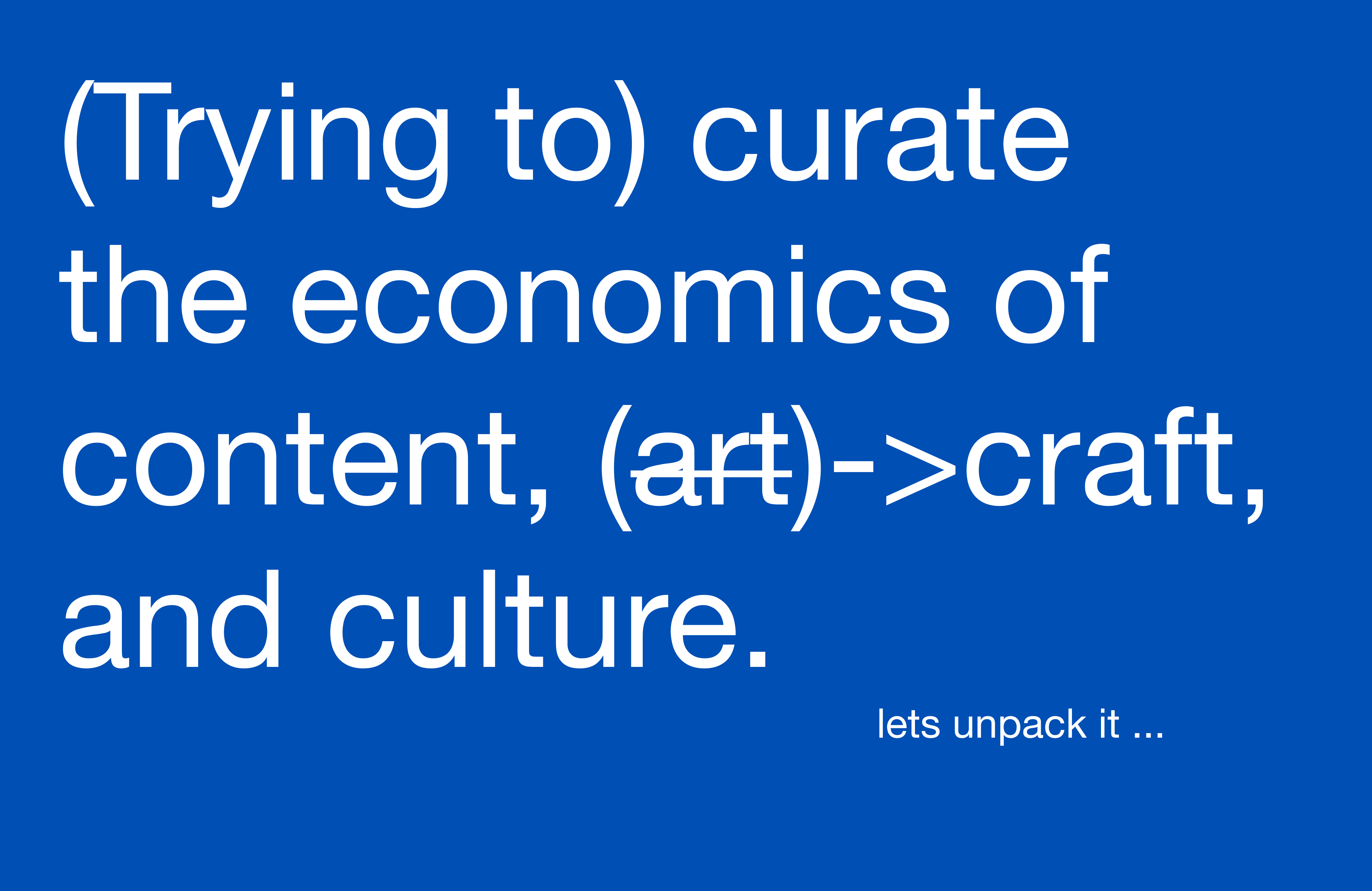 (Trying to) curate the economics of content, ~~(art) >~~craft, and culture.
